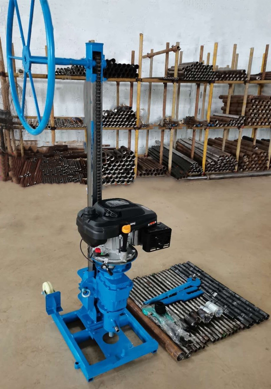 可以2人操作的取芯鉆機!鉆探深度可達20米!采用輕便的汽油機(或柴油機可選)作為動力,分體式輕便實用,帶兩輪搬遷十分便利,帶支架穩(wěn)定可靠,滿足野外車輛無法進入地區(qū)時用;鉆機操作簡單,易學易懂??蓪崿F(xiàn)合金鉆頭、復(fù)合片鉆頭、金剛石鉆頭取樣鉆進,也可以實現(xiàn)麻花螺旋鉆進、三葉合金鉆頭、復(fù)合片不取芯鉆頭等不取芯鉆孔鉆進的需求。