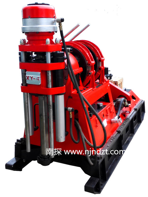 XY-4型鉆機是機械傳動液壓給進的巖芯鉆機,用42mm鉆桿能鉆1000米的孔。主要用于地表及坑道對固體礦床的金剛石、合金鉆探,可用于工程地質(zhì)勘察及地下水勘探,淺層石油,天然氣勘探、堤壩灌注、坑道通風、排水鉆探等工程孔鉆進。